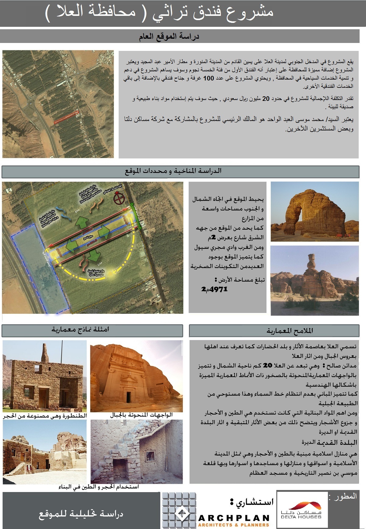 وصف المشروع تقديم التصاميم والافكار الاولية والحلول لانشاء فندق تراثي